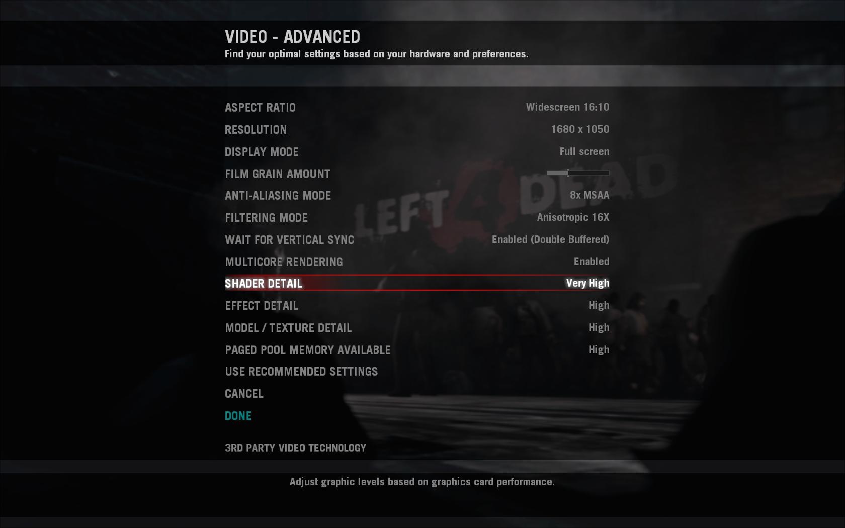 Settings are not maxed, but fairly high with a resolution of 1680×1050.