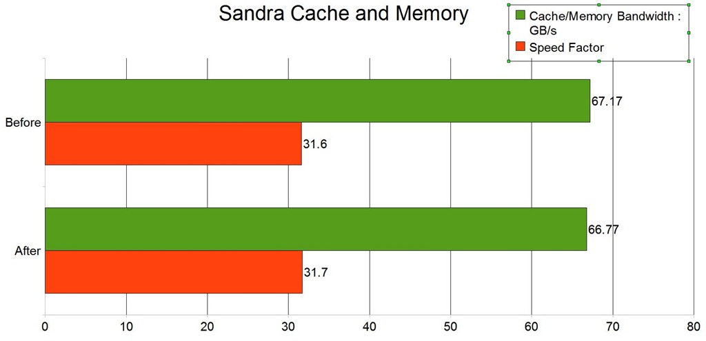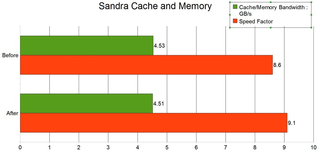 Speed Factor: is a figure representing the speed differential between the CPU’s cache and memory. The value is the ratio of the fastest cache (i.e. L1) bandwidth to the main memory bandwidth. (Lower is better, i.e. the memory is not very much slower than CPU’s cache)