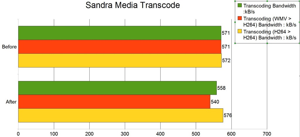 Measures the media transcoding performance, i.e. decoding video & audio from one format and then encoding it to another. Shows how your processors or hardware accelerators handle transcoding in comparison to other typical transcoders.