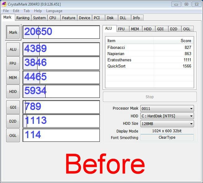 The last test is a system wide test, it’s called Crystalmark that tests everything.