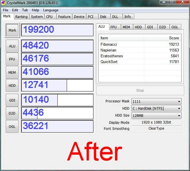 Again here we see a drop in performance after installing SP1 on my netbook. Not looking good for good old Service Pack 1 at all.