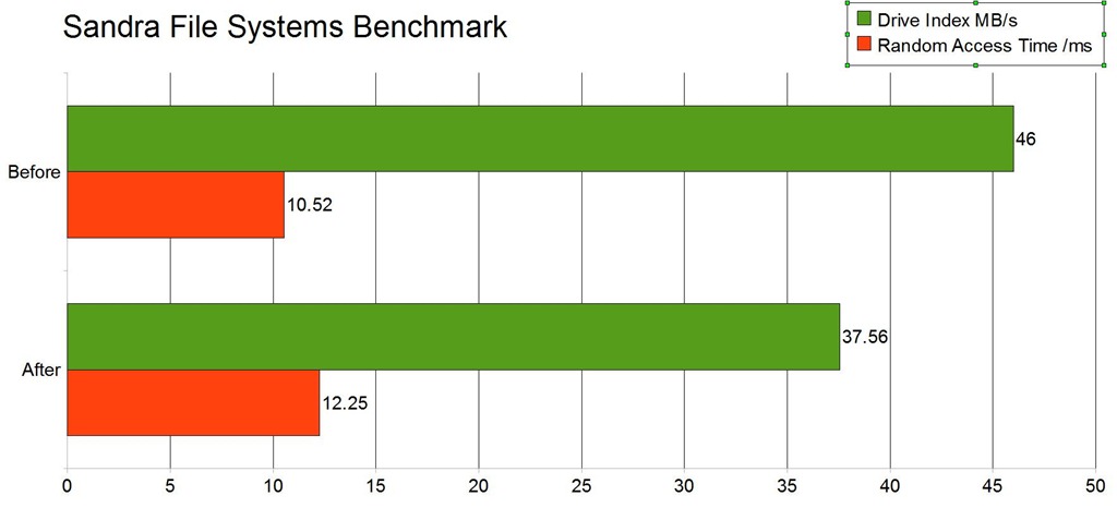 Next would be the File Systems test, I’m using a rather fast Samsung F4 320gb hard drive as my operating system drive.