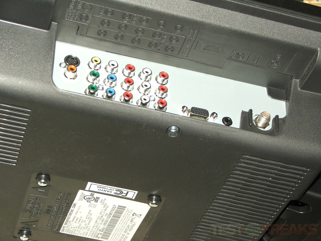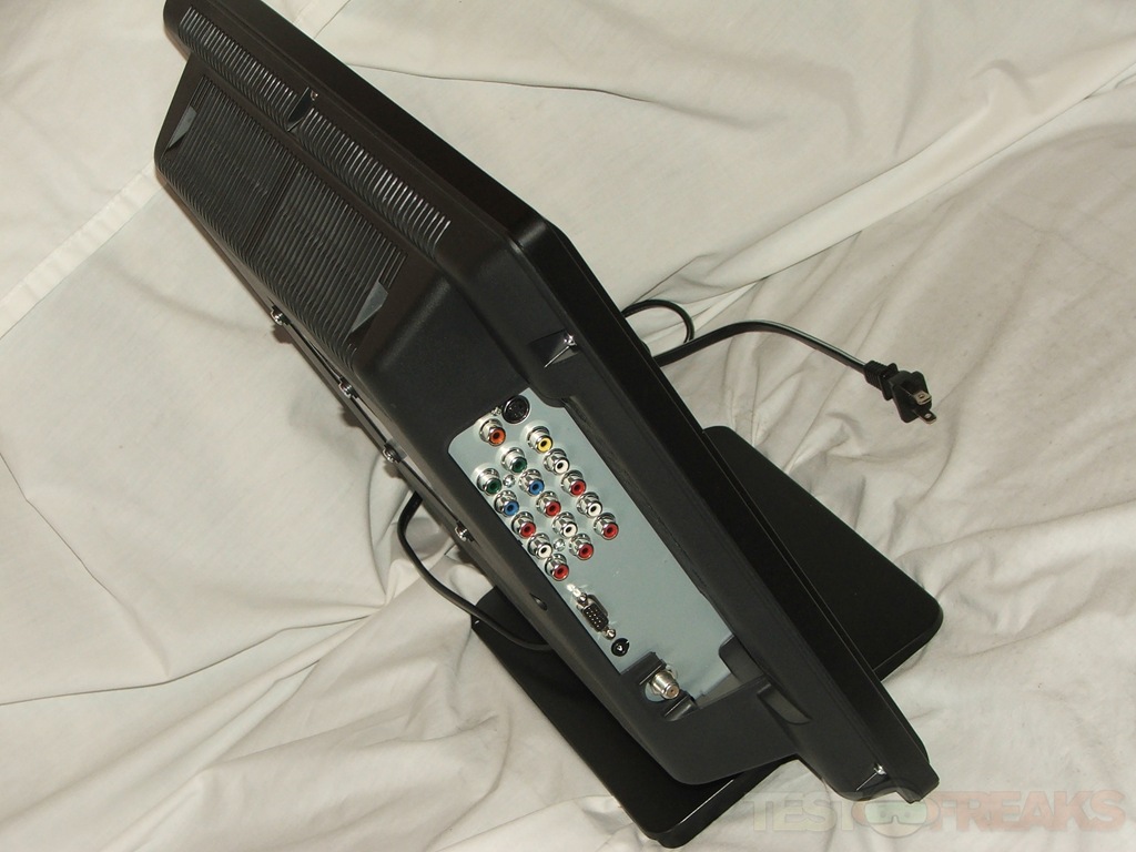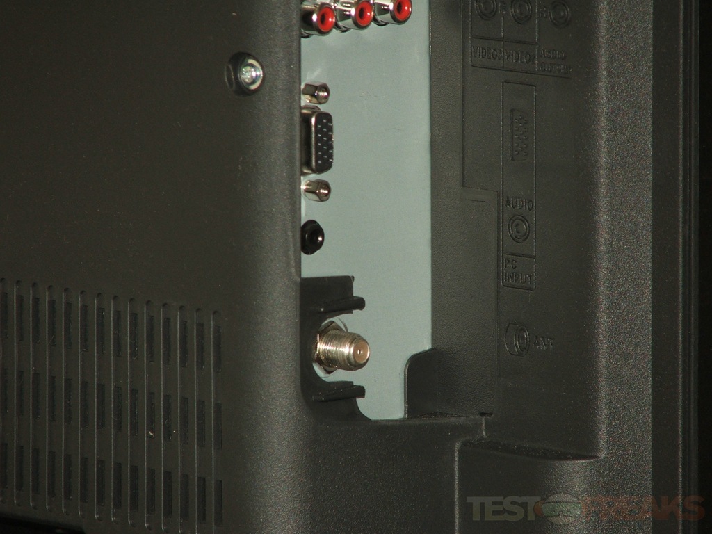 On the left side is where you’ll find all of your inputs, I’d rather have them on the back myself to kind of keep the cables hidden, but this works for ease of use or access. There are two component connections, along with S-Video, standard composite, Coaxial, VGA, antenna connection and a 3.5mm audio jack that is used for the PC/VGA connection. There is no HDMI connection on this TV..