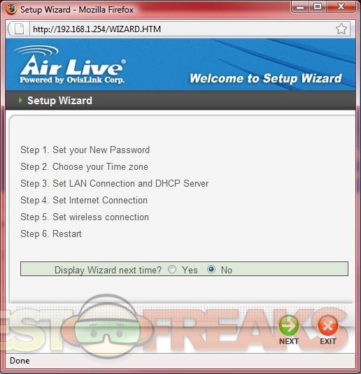 For you convenience AirLive includes a setup wizard to speed things along, and to be used by those not quite familiar with setting up a router.
