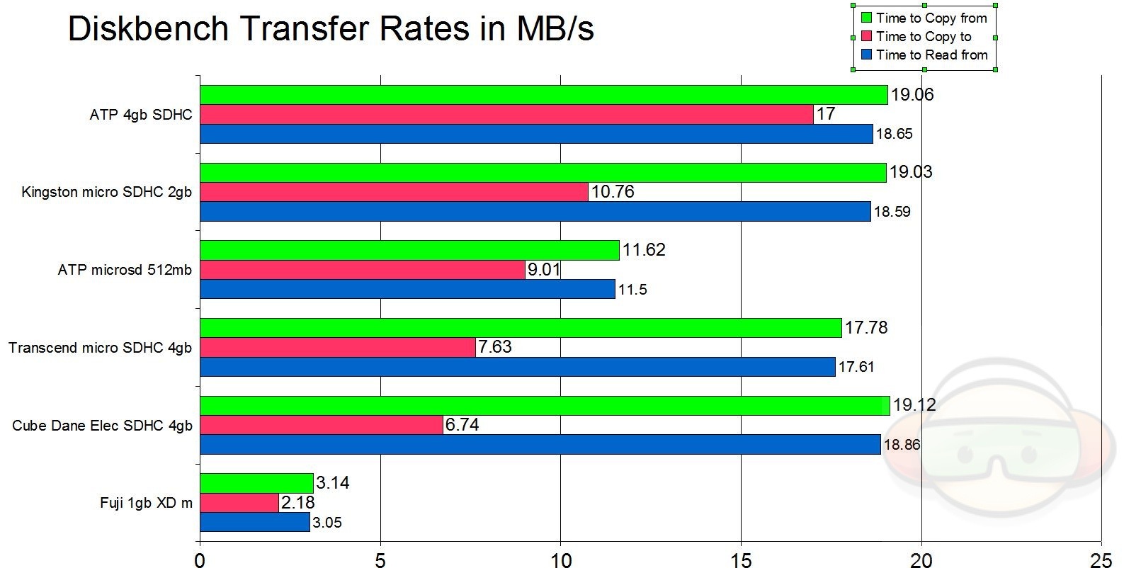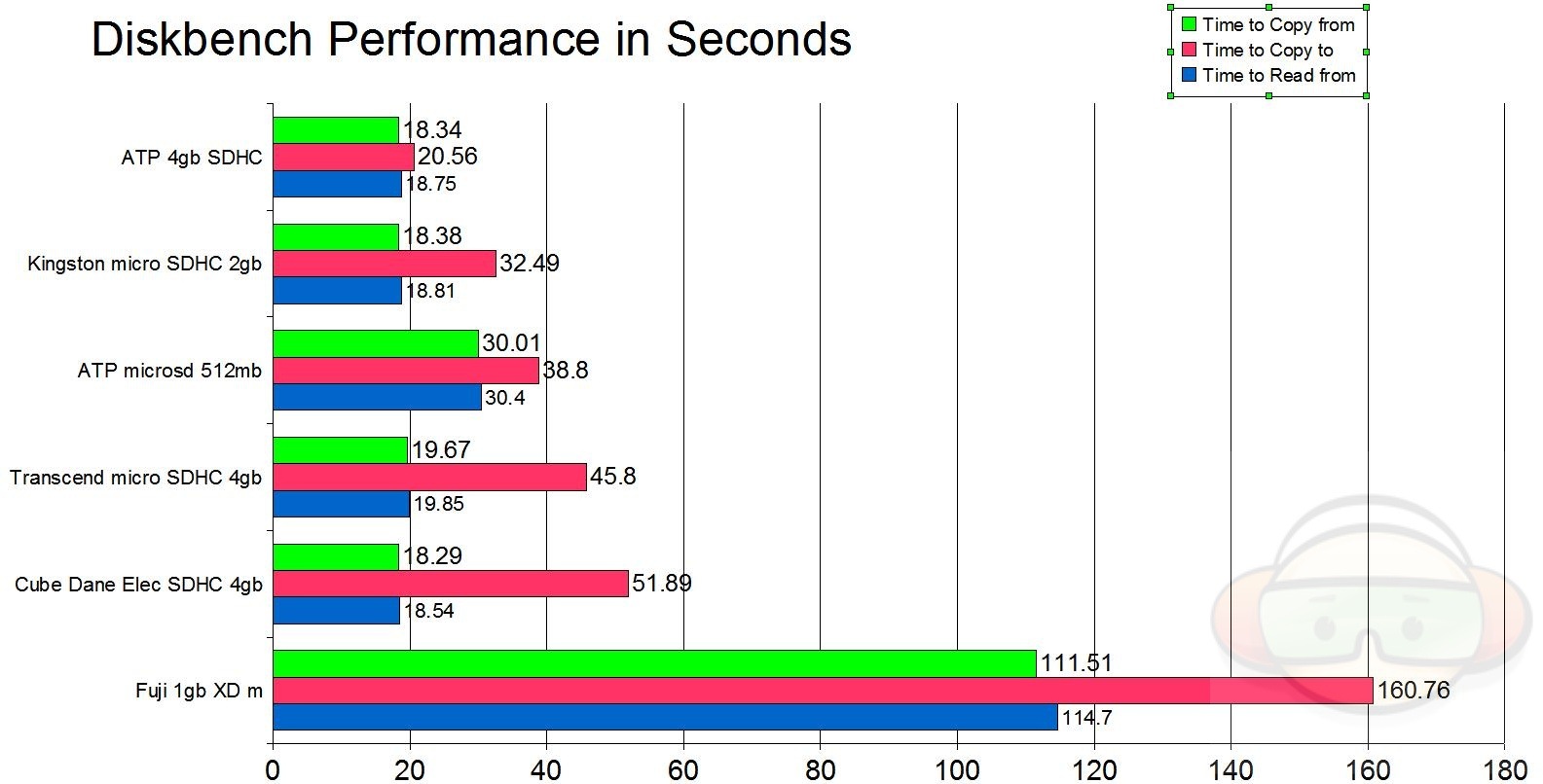 I used the Write or Copy To speed to rank the card in the chart. Results are in seconds, lower scores are better.