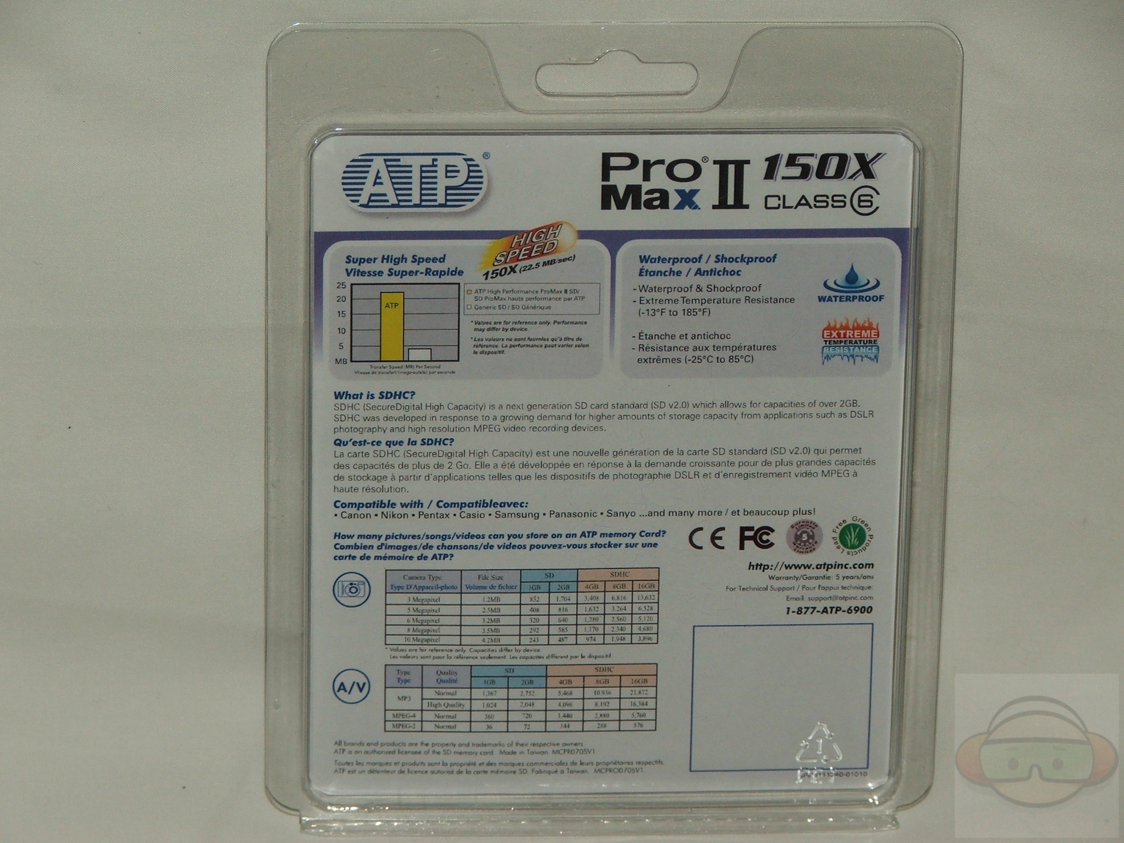 No video for you today… it’s just an SD card after all. The ATP ProMax II card comes in an easy open plastic clamshell style case. You can plainly see the card through the front along with specs and features as well listed on the front and back.