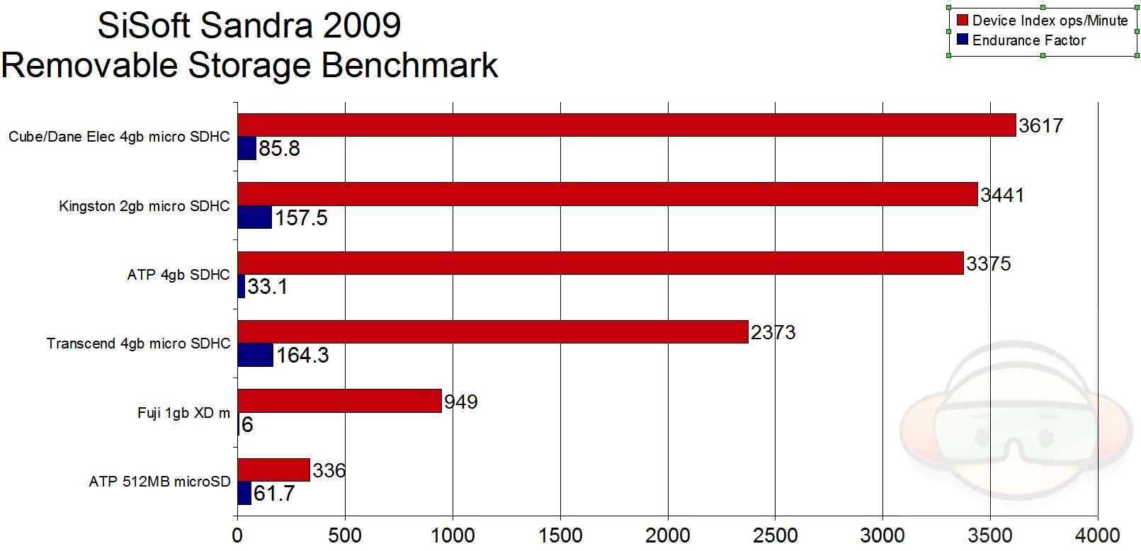 For testing first we’ve got SiSoft Sandra 2009 Removable Storage Benchmark, Higher Scores are Better: