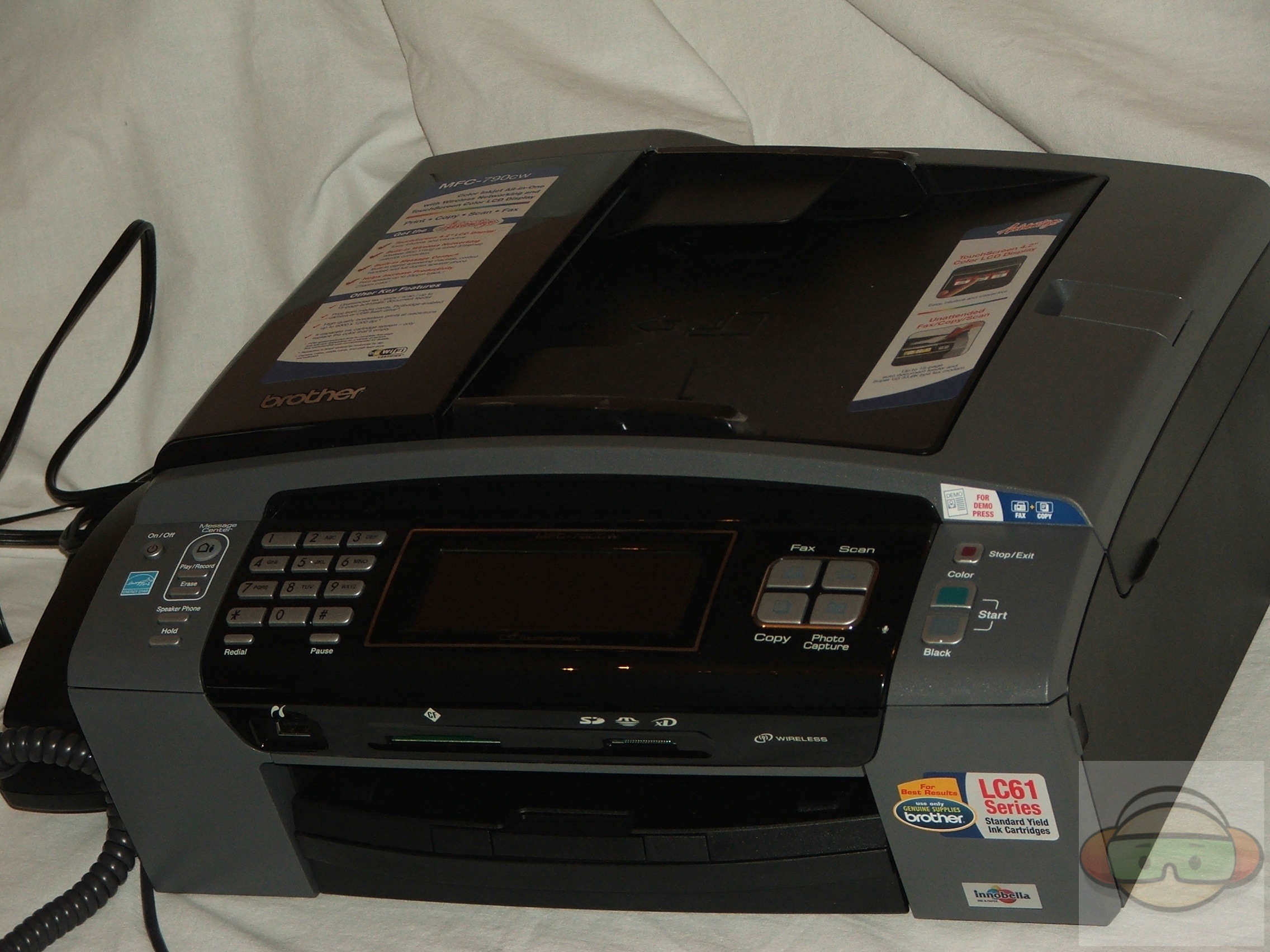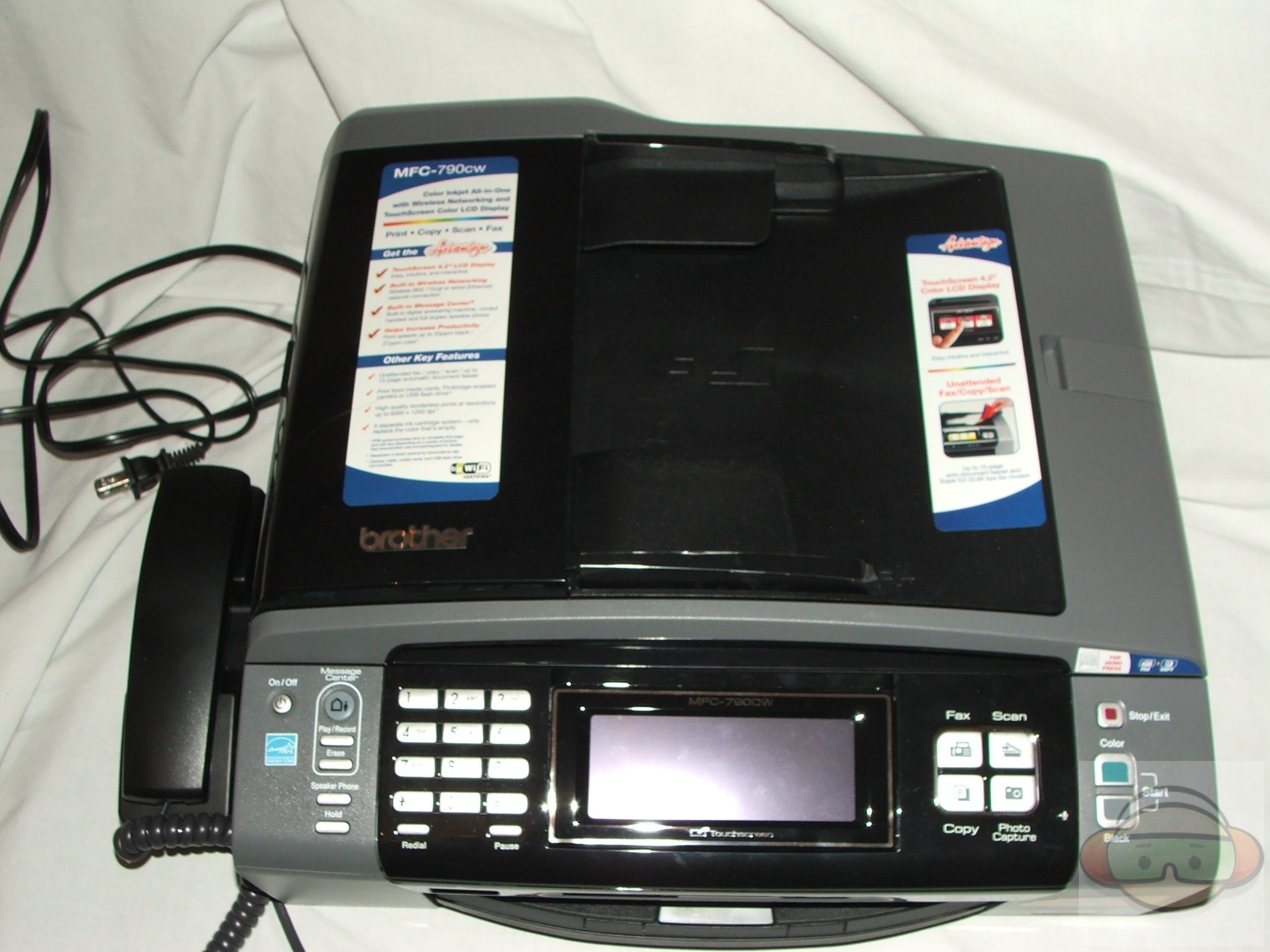 All-in-one printer have become very popular, especially since more and more and more people are working from home. These home offices need something that can do everything for them as space is limited to have several devices around, and with most home offices the computer is also their personal computer, so it’s nice to have a machine that does everything for business and personal use. A little while ago I took a look at an excellent all-in-one printer from Epson, the Workforce 600, today for review I’ve got another, this one is from Brother, it’s the MFC-790CW. It’s almost as feature packed as the Epson, but the Brother has a phone built in, LCD touchscreen and voice messaging center as well, something the Epson did not have. The Brother MFC-790CW is an excellent choice for the home office or small business that needs something that can do everything.