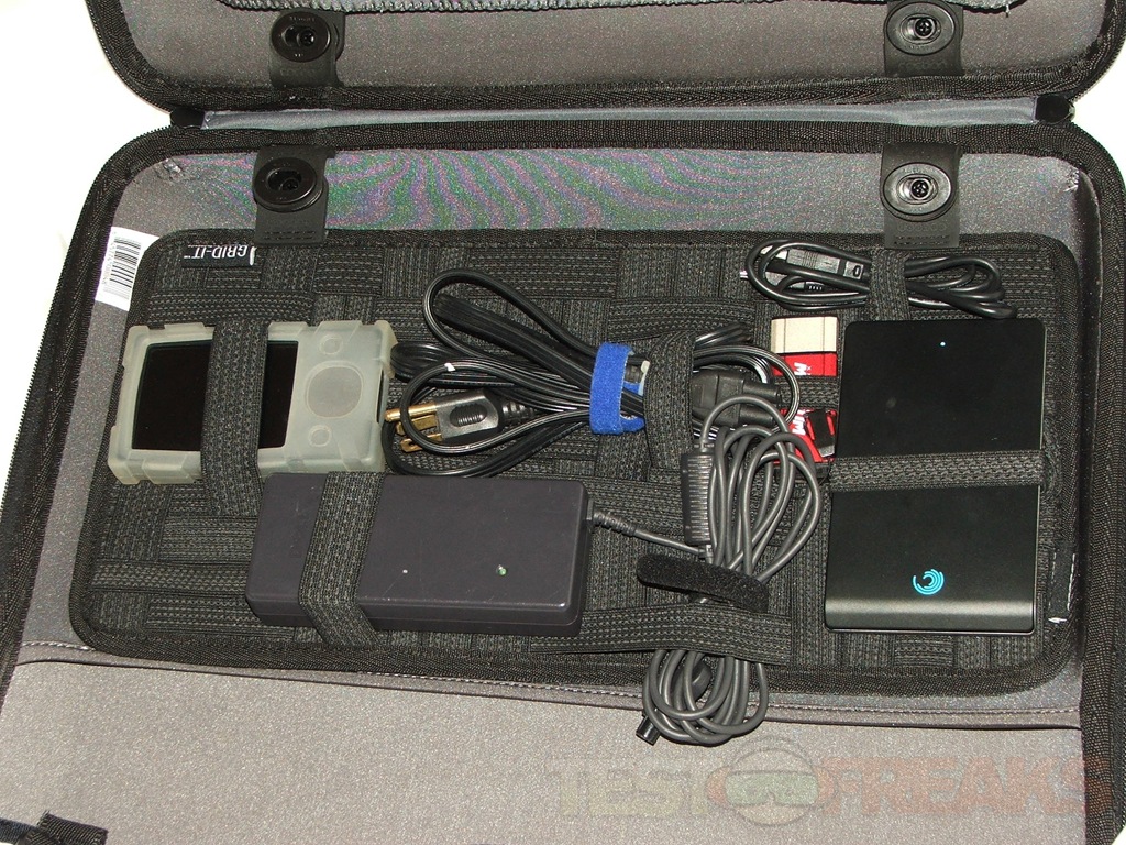 The way the GridIt comes looks reversed at first, but when you open it and have you laptop there the stuff in the GridIT is easily accessible to the user.