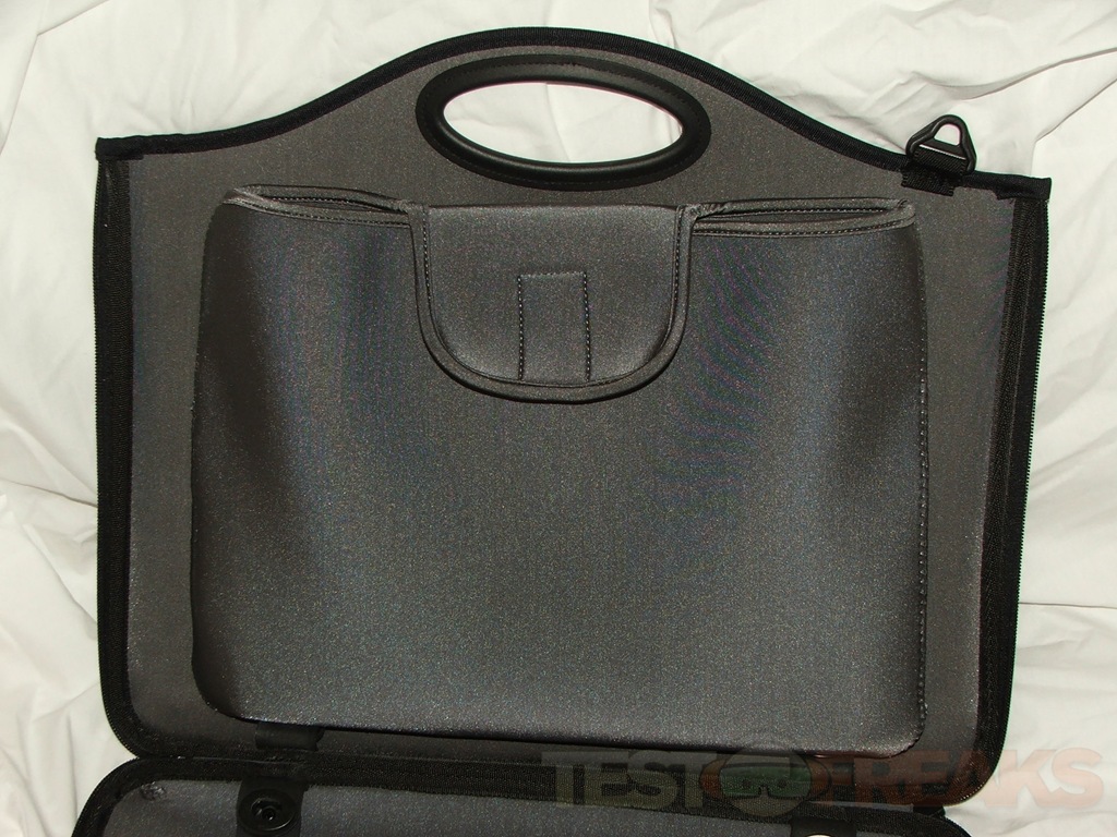 The GridIt system is above the laptop sleeve, but it’s more versatile than the one that was in the netbook case as it features two pockets on the back of it.