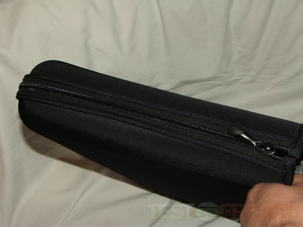 The case outside is nicely made, a nylon material, but it’s not soft like a bag, but it’s not really hard either like a case, kind of in the middle offering a firm outer casing. It has dual heavy duty zippers on it as well.