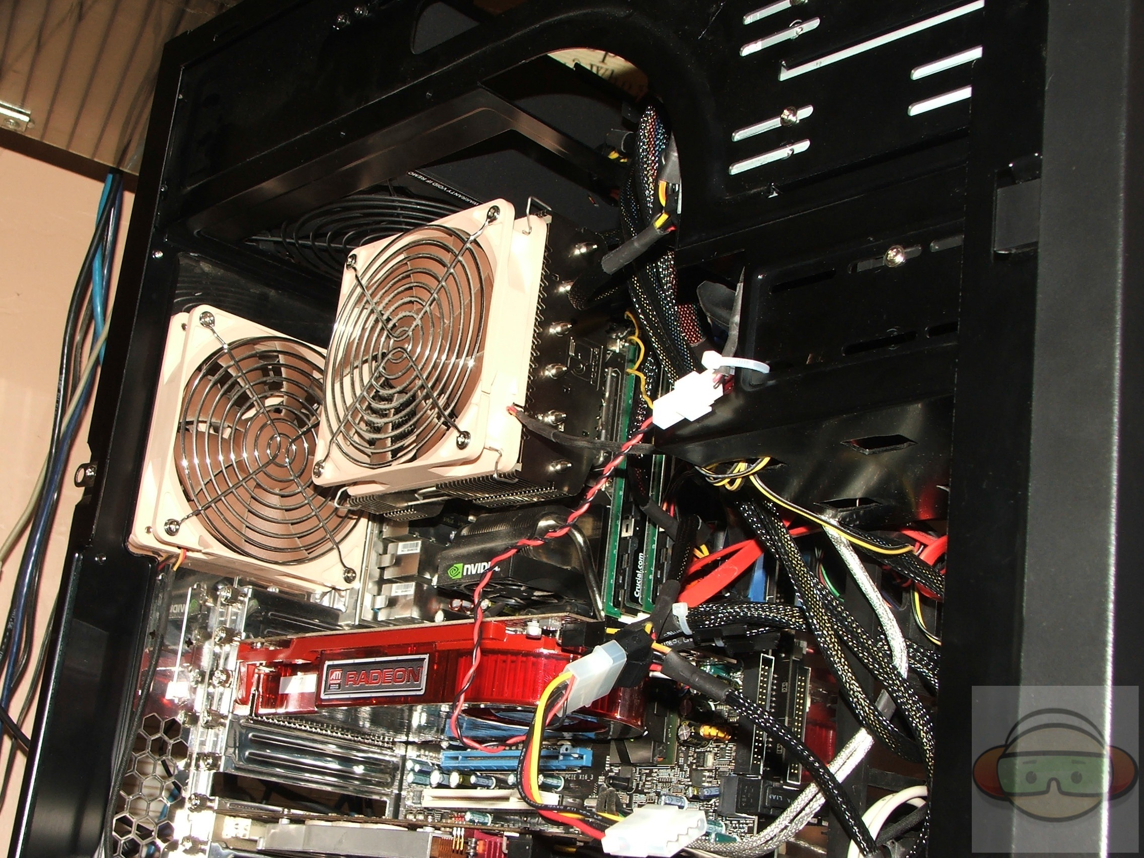 I did move everything over later on, and currently I’ve got everything in my Antec P182, the main reason I mention this is because the P182 is type of case that you mount the PSU on the bottom and my motherboard, an EVGA NF680i SLI, has the 12v connection on the top left corner, some power supplies have cables that are not long enough to reach through the back. The Corsair TX750W reached fine, I easily ran the 12v power connector and other on the back side of the motherboard with no problems at all.