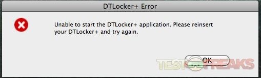 Initially when I first plugged in the DataTraveler Locker+ into my MacBook Pro, I was unable to execute the DTLocker+ application and received the following error:
