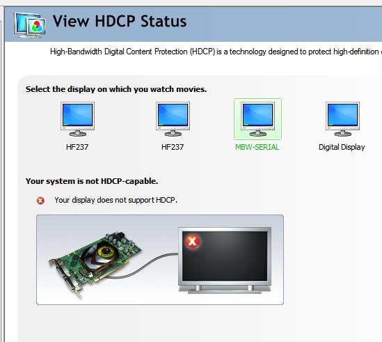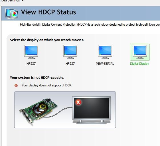 An odd thing I noticed is that when I hooked up the DoubleSight it also listed my other monitor as not being HDCP capable, and mis-named them as well, I don’t have two HF237 monitors. The monitor listed as non-HDCP is one that I know is HDCP capable, I can still play Blu-Rays etc on the monitor, so there’s just something funky going on there…