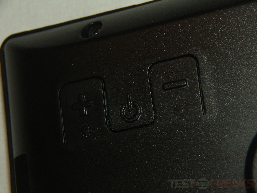 On the back of the monitor you’ll find a threaded hole for the thumbscrew, USB port, power and brightness buttons. You’ll also notice a couple holes in the back of the monitor as well.