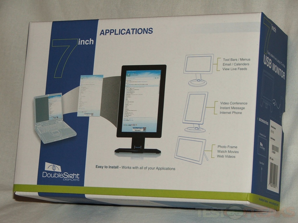 The DoubleSight 7” LCD comes in an attractive box with pictures and specs listed.