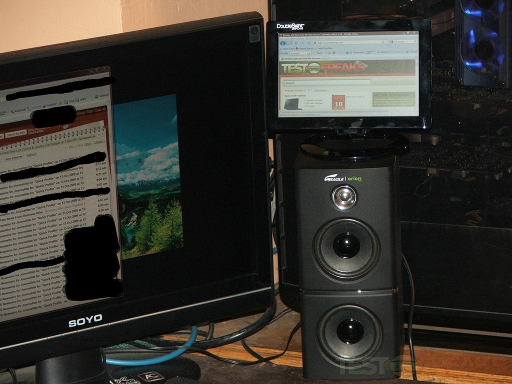 I’ve got the DoubleSight “ LCD monitor sitting on top of my speaker next to my right side monitor: