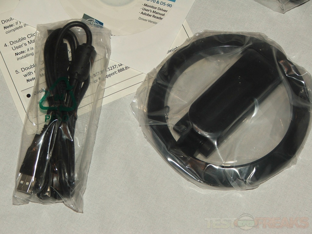Included with the monitor is a stand, ‘Y’ USB cable, drive disc, and user manual. The ‘Y’ USB cable is similar to those that come with a portable USB hard drive, the extra connection to to provide additional power via a USB port if need be.