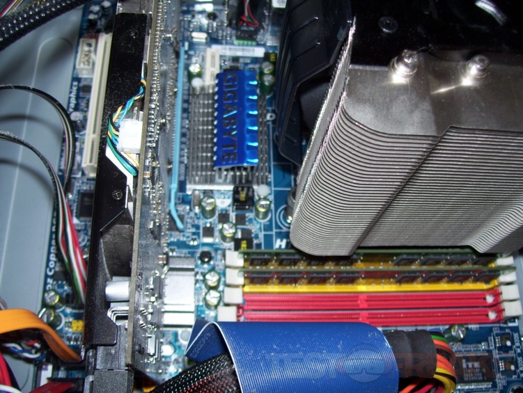 The side comes pretty close to the RAM, but on this board, just about all coolers do. Shouldn’t be an issue. There are no other clearance issues posed by this cooler, which means despite its size, its more tall than it is bulky and doesn’t bother your other equipment.
