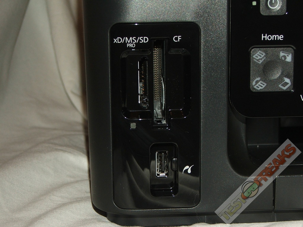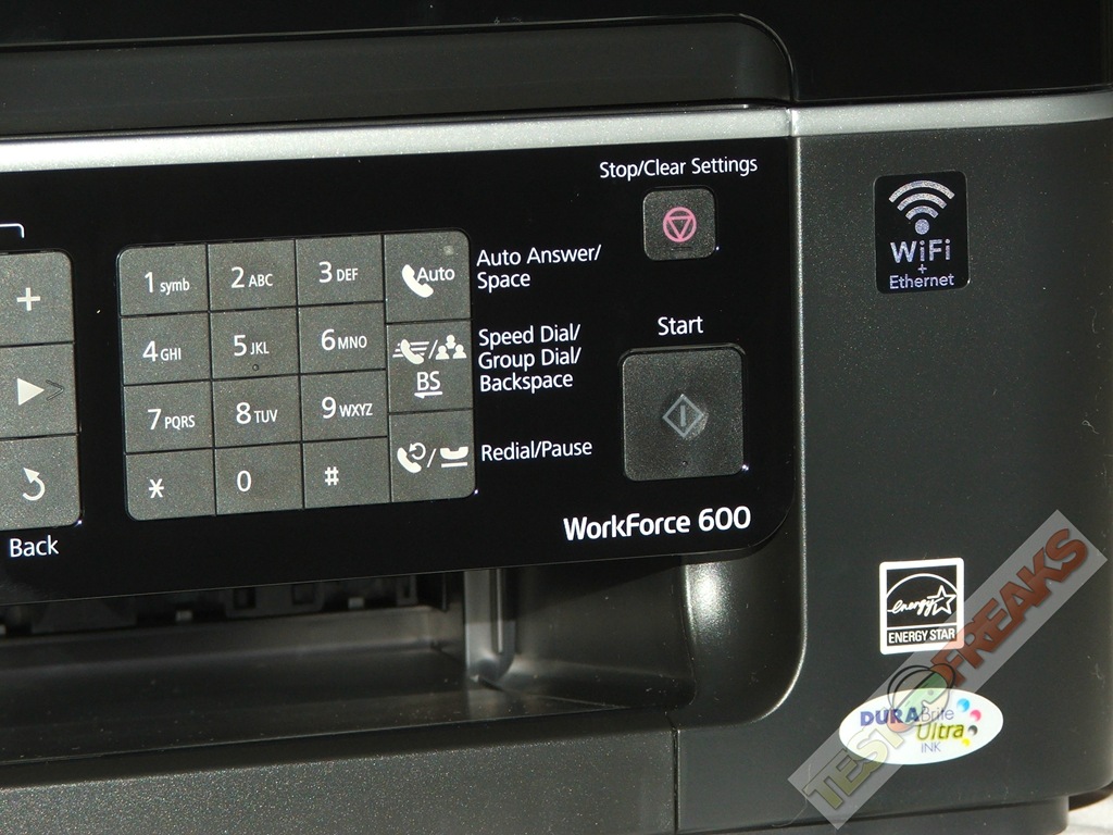 The main interface of the WorkForce 600 in on the front panel, here you’ll find all of your function buttons and even a color LCD panel to make navigation, operation and even editing your photos easy. Off the the far left of the panel is the card reader and USB port as well, I found that the card reader doubles as a storage device for the printer as well. You can scan documents, save them to a memory card or USB drive and then just transfer them to your computer, no need to use any software to scan documents anymore, a very nice feature indeed.