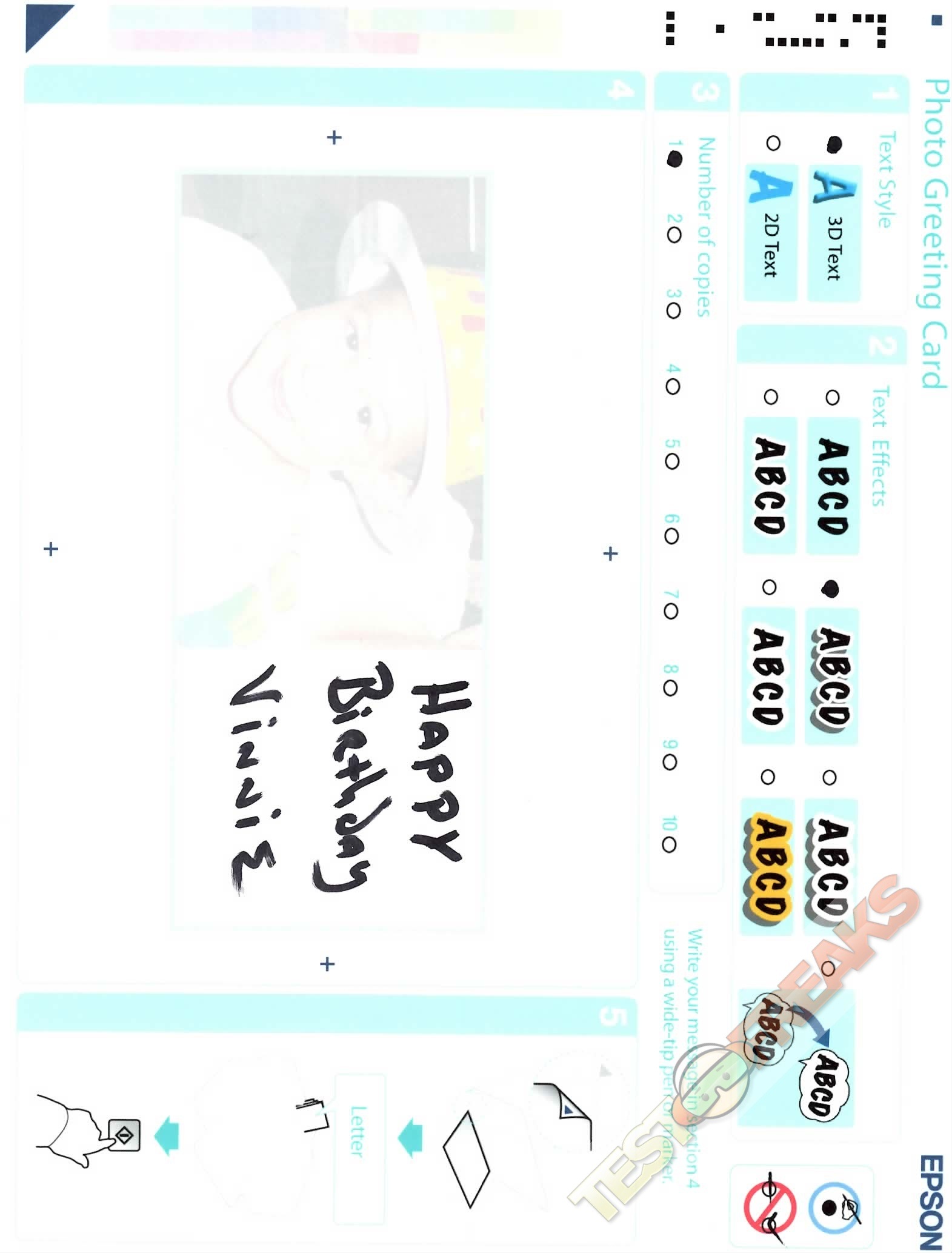 There’s also a very cool greeting card feature, you pick a picture, print a template, fill out the template and then re-scan it, the WorkForce 600 will understand your choices and print out your cards. Here’s the template, then filled out, then the actual cards, clicking on these picture will take you to hi-res views at 1587×2187 resolution.