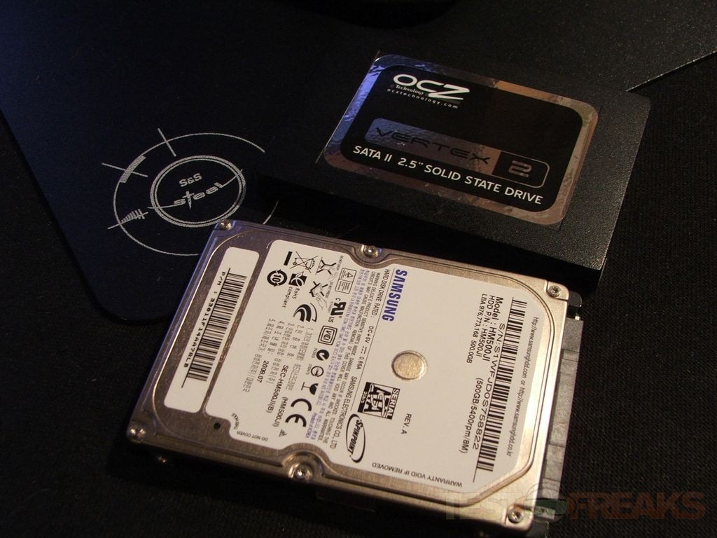 For testing I decided to use both a regular Samsung 5400RPM 500gb hard drive and the OCZ Vertex 2 E 120GB SSD.