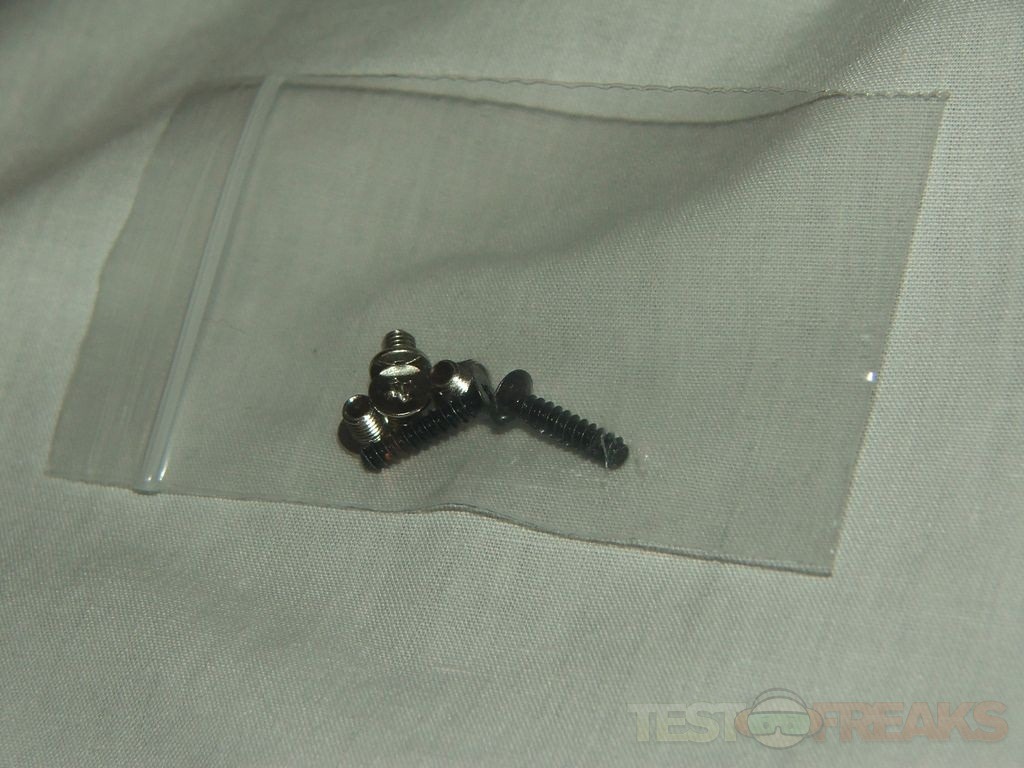 To install the drives you’ll need four screws, you just stick connect the drive to the SATA connectors, then flip over the tray and use the four screws to hold the drive in place. Then you’ll need the two longer blacks screws to secure the end of the enclosure the the housing.