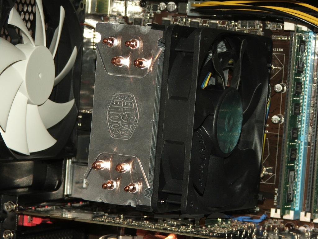 The CPU is a Core i5 with a Cooler Master CPU Cooler on it: