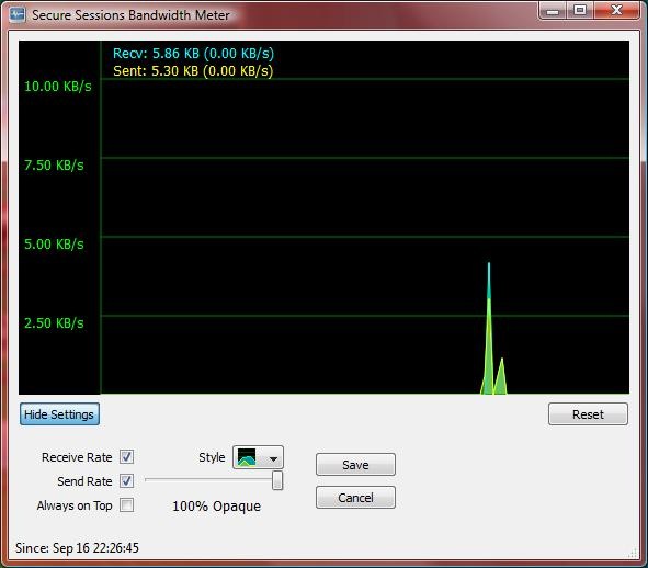 IronKey also puts a small icon in your taskbar that allows you to turn secure sessions on and off, monitor secure servers and even check the bandwidth being used by the secure sessions.