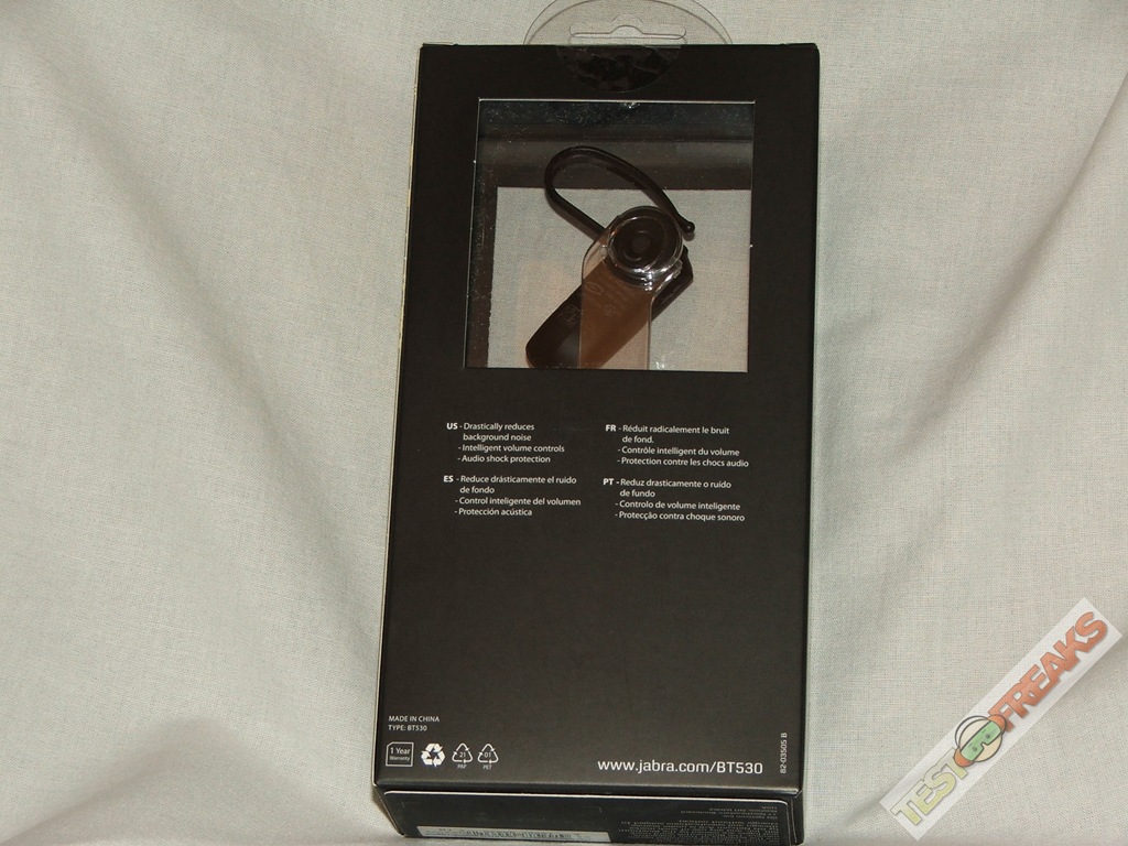 The packaging for the Jabra BT530 is impressive, I was like ‘wow’ when I opened the shipping box. It’s a display style box with the BT530 seen though a smaller plastic box inside, you can look through the front and back the box to see both sides. Of course the specs and features are listed as well on the box..