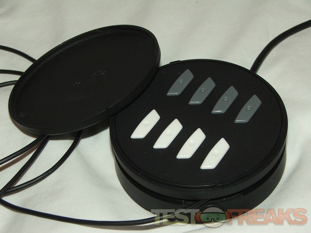 The charging base is the wireless receiver as well, it reminds me of a hockey puck actually, and it’s rather heavy with a rubberized base to make sure it stays where you put it. The charging cord is nice and long, on the very end is where you find the charging contacts, the plug just clips to the bottom of the X8 with a magnet and stays in place nicely. The cord wraps around the base, there’s an indentation in the middle section of the base where the cord fits into.