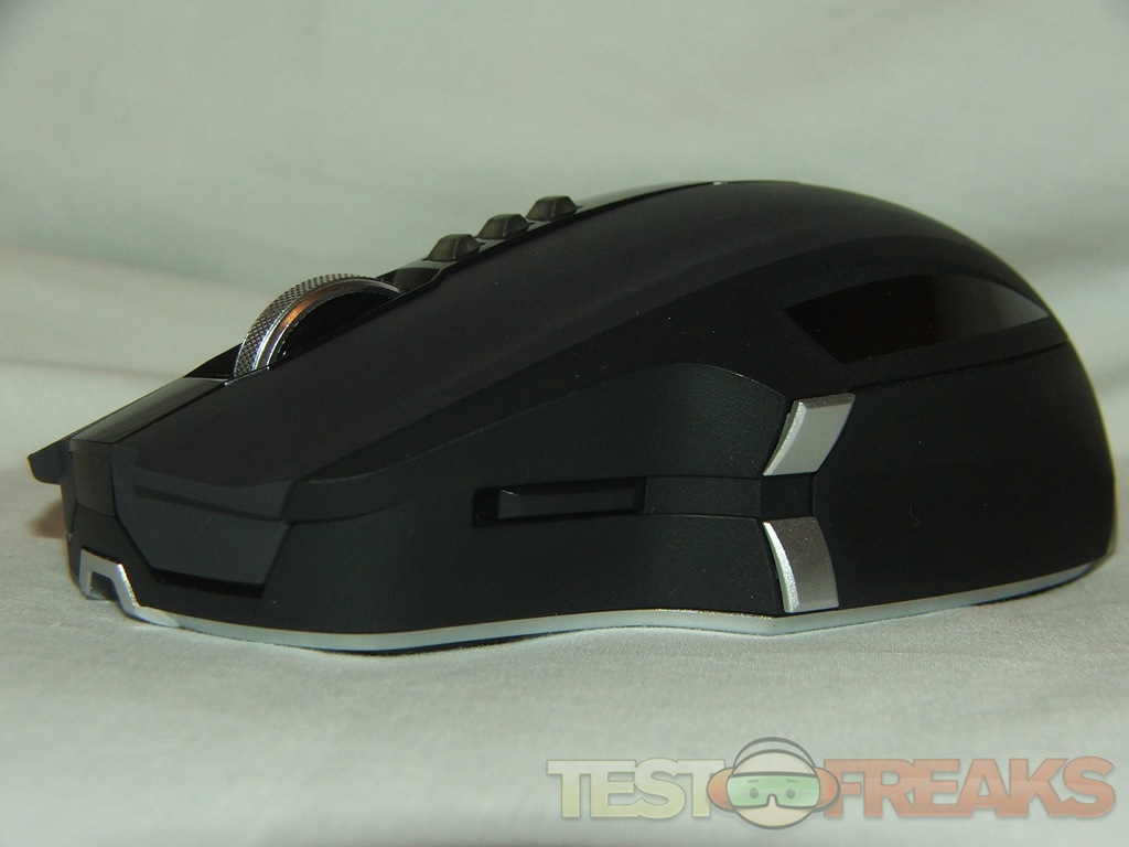 The SideWinder X8 features three buttons on the left side, two of which can be your standard back and forth browser buttons, the other, towards the front is for creating macros for gaming. The stacked buttons on the side are a bit odd as most mice have them side by side or even on either side of the mouse, I’m still not quite accustomed to them yet.