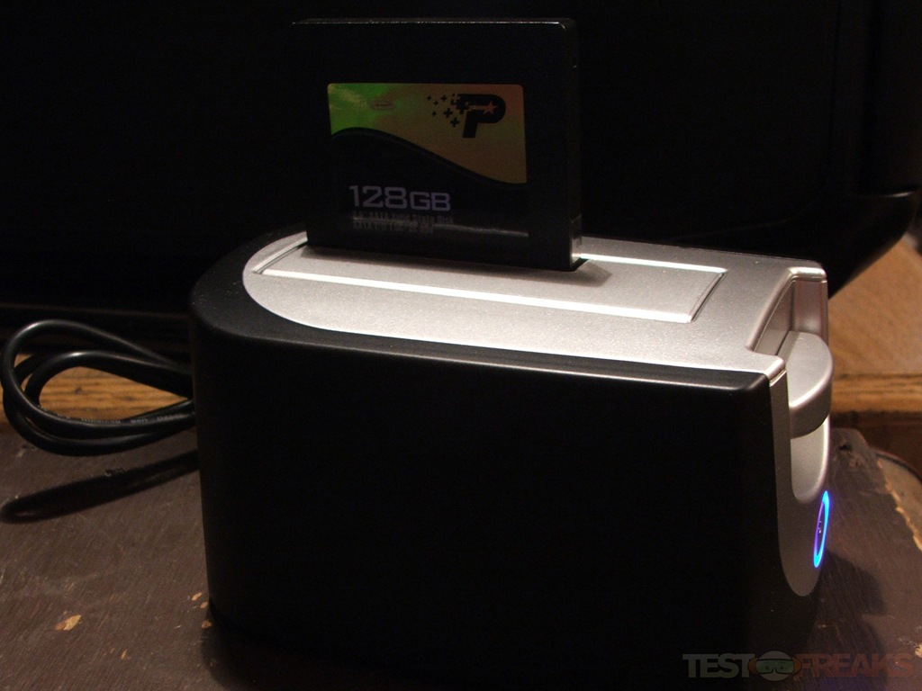 There’s not much to the installation of this product, just plug it into power and then choose the interface and plug it into your computer. I don’t have any FireWire devices to compare the Voyager Q to, so I’m just comparing the USB and eSATA interfaces. Currently I use the Thermaltake BlacX SATA HDD Dock for my quick transfer needs, so that’s what I’m comparing the Voyager Q to. I’m using the Patriot 128GBWarp SSD drive for the tests.