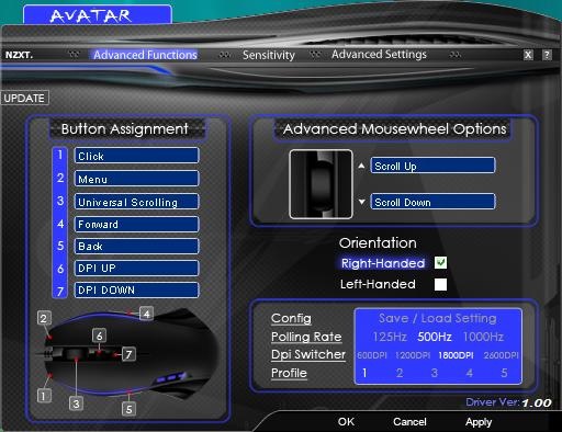 Introducing the first gaming mouse from the award winning NZXT design team, as with all of NZXT’s PC accessories, Avatar is designed to provide gamers with the ultimate crafted gaming armor to emerge victorious in the gaming arena of choice. Featuring a ambidextrous and smaller form, the Avatar mouse is versatile and ideal for gamers. A hardware implemented DPI switching allows compatibility with any game, and the Avatar interface allows for all types of customization including macros and 9 customizable buttons. Extruded Teflon mouse feet also allows for better accuracy and smoothness during gameplay.