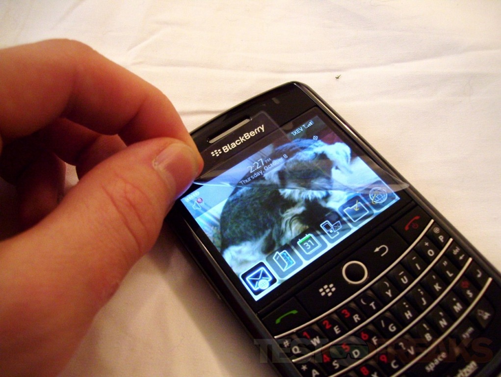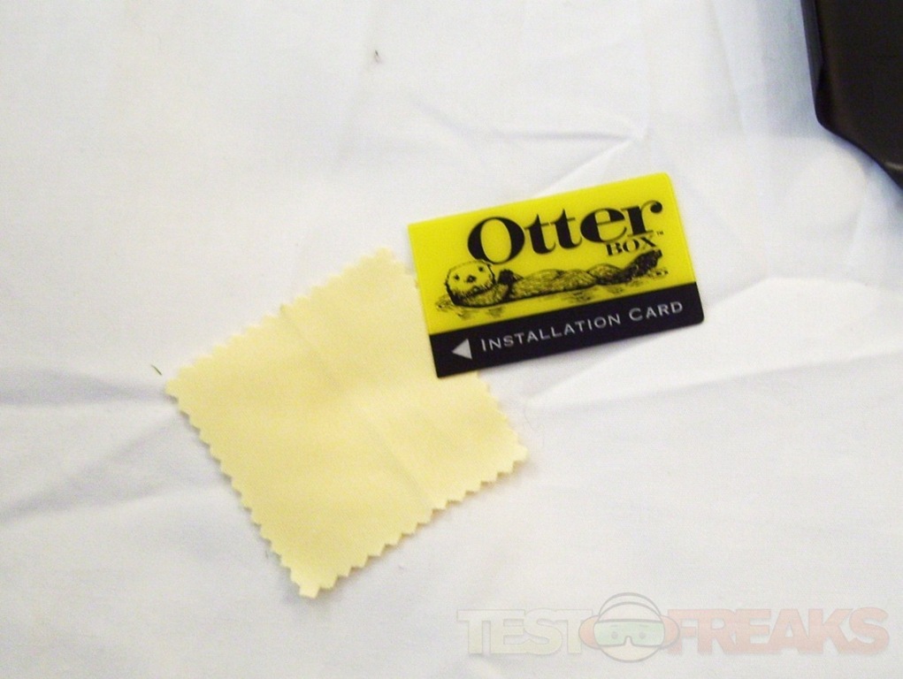 Once you decide where you want to slice open the package so you can get to the case, it will come out and you’ll see a paper Blackberry insert where the front of your phone shows through. Underneath it is a small cloth, the Otter installation card and a plastic screen cover.
