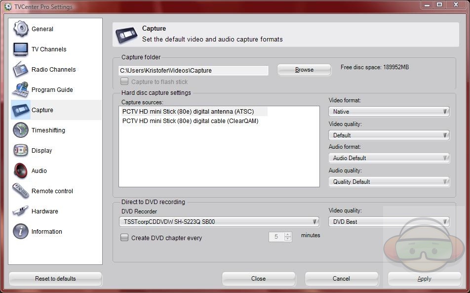 Don’t bother with the excreable Pinnacle software. Use XBMC or the even better JR Media Center. XBMC is good, JRMC is great to superb. The Pinnacle hardware is just fine, as always it’s the quality of the software that determines how well the product works.