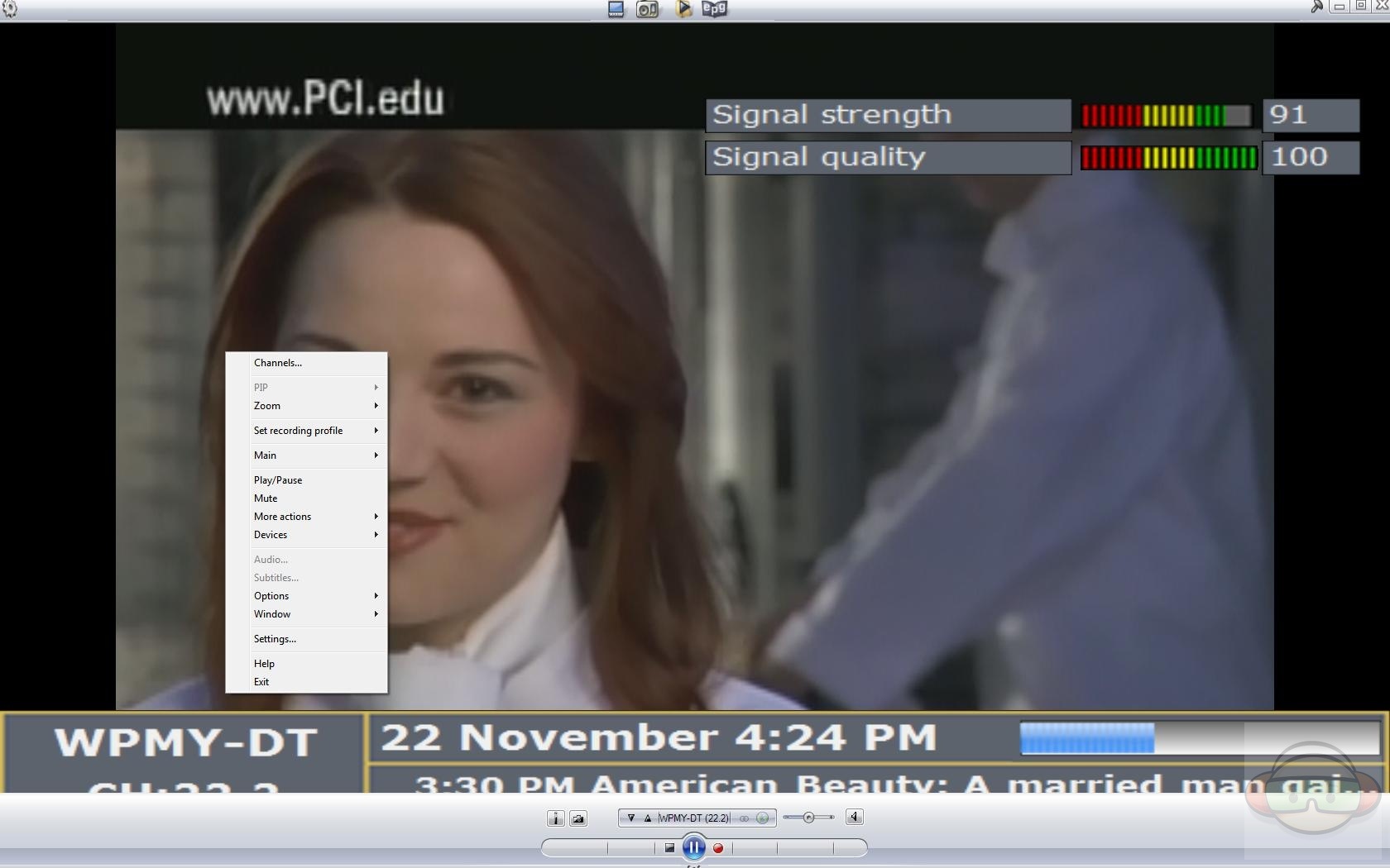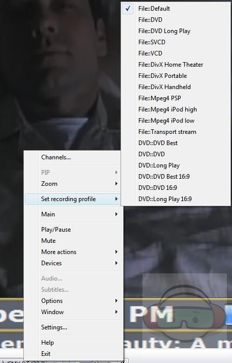 Right clicking anywhere on the screen will give you another menu of several choices including channels, zoom, main menu, play/pause, mute, more actions, devices, options, recording profiles, window adjustments, settings and help.