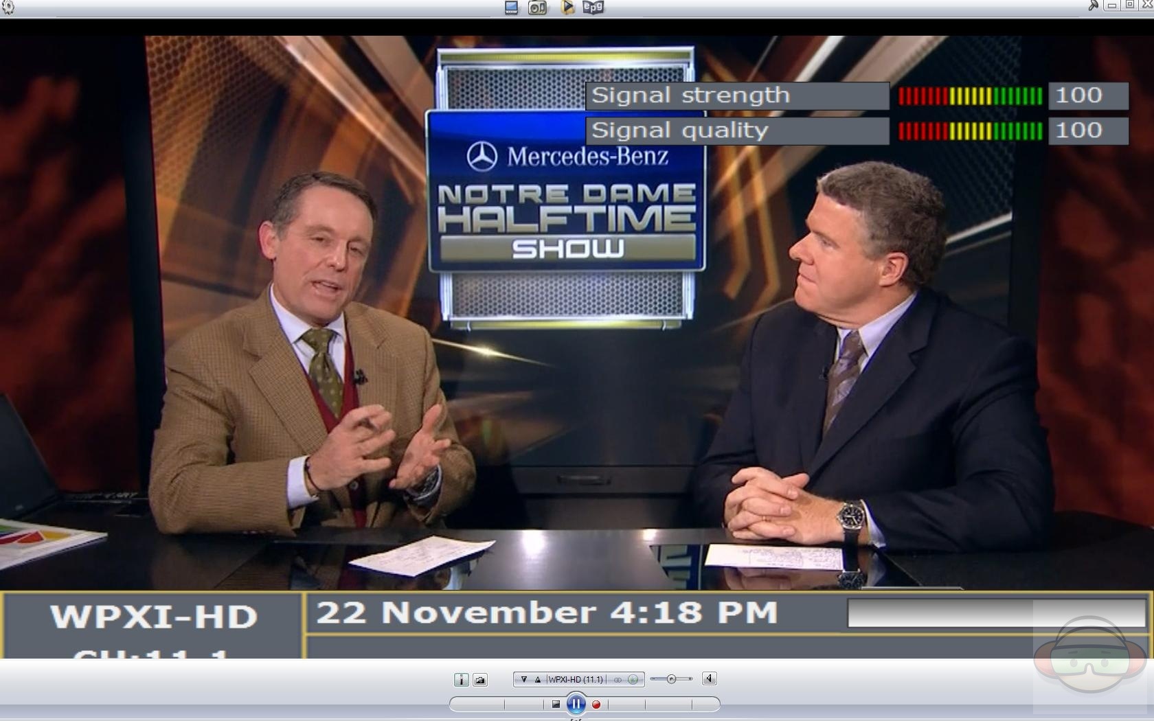 Once that’s done you’re ready to watch TV and listen to the radio, it was easy to do, took about 10 minutes total and I was watching TV in HD and DT. There is an interface at the top of the screen and the bottom that will go away after a few seconds to allow actual full screen viewing. You can change channels from the selector at the bottom or you can have a small widow pop up with the channels listed. When you go to a channel on the top right of the screen you will see signal quality and signal strength bars and at the bottom it will show you what’s on the channel if it’s available. These bar will disappear as well after a few seconds, or you can make them stay there if you wish by clicking the ‘i’ for information button in the bottom bar.