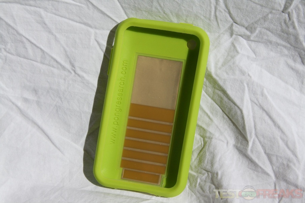 Upon initial inspection the Pong Case for iPhone 3G/3GS does not look much different from other silicone iPhone cases. It comes in either black or green and has nice rubbery grip. It feels like a rubber tire in texture. The case features openings for the camera, headphones, dock connector, and volume controls.