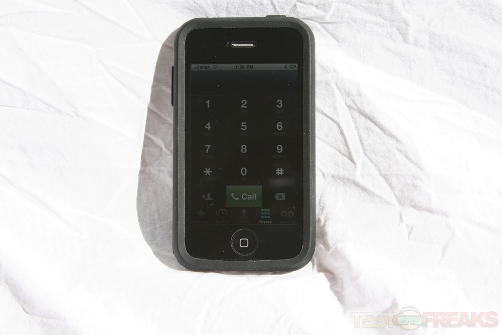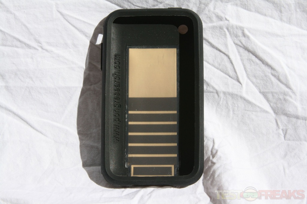 Same as with most silicone cases the iPhone slides through the front of the case. The Pong Case for iPhone 3G/3GS sits snuggly around the iPhone and adds some additional mass to the iPhone. The case is a little bit heavier than most others due to the radiation deflecting material in the back.
