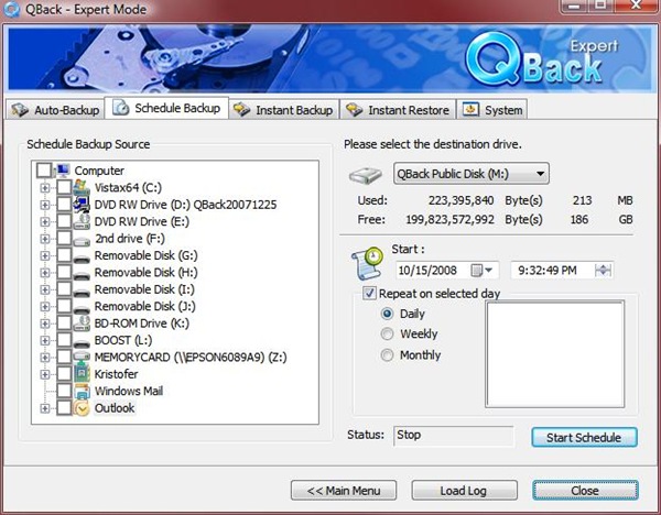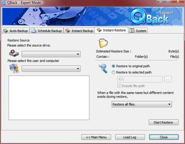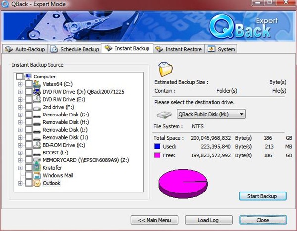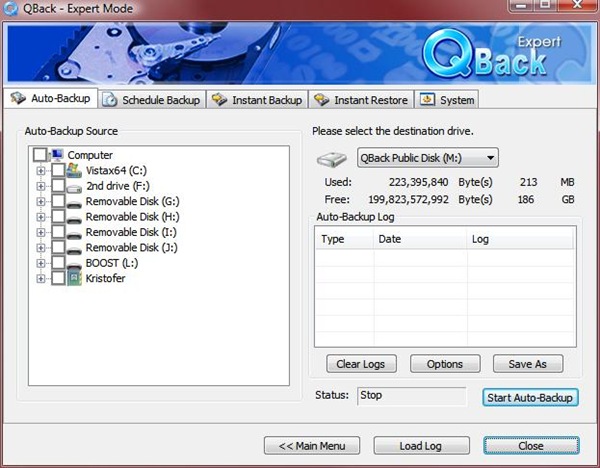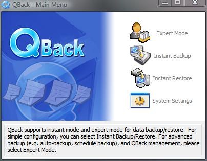 Once that’s complete the software is running on your computer and ready to go, a little ‘Q’ sits in the taskbar waiting for your commands. The main menu features four options, Expert Mode, Instant Backup, Instant Restore and Settings. The Expert Mode for me is really the easiest as all of the options are right there for you.