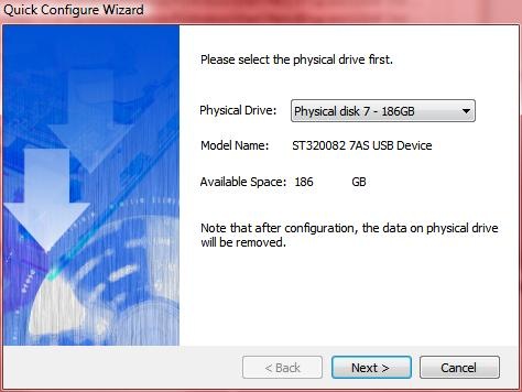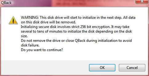 Once that’s done just plug it in and power it up, hooking it up to USB port first though to initialize the drive through the Qback software, you can’t do it through the eSATA connection.