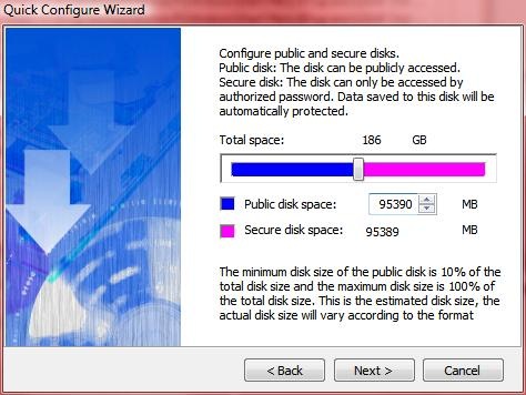 To initialize the disc you just need to install the included software and run it, you’re greeted with several steps to walk you though the process, including partitioning the drive to public and secure and creating a password.