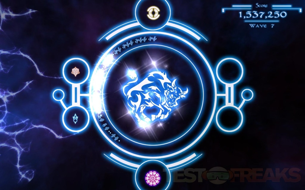 When you complete a level you’re greeted with a finish screen, and letting you know you unlocked a new level, for each level completed you’re greeted with what I can only guess is a zodiac symbol. The stats are also shown in the bottom left corner as well.