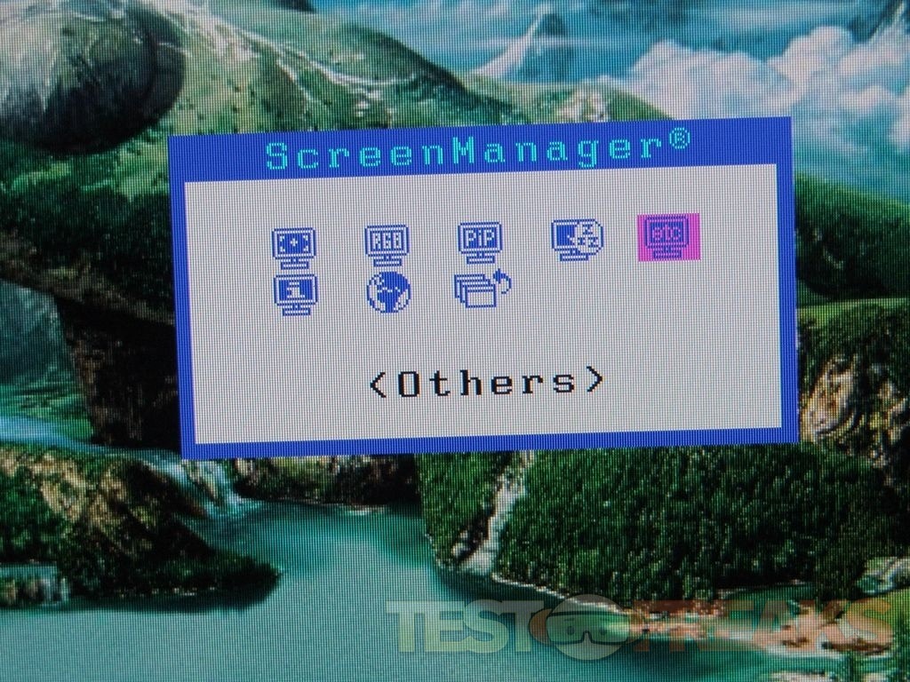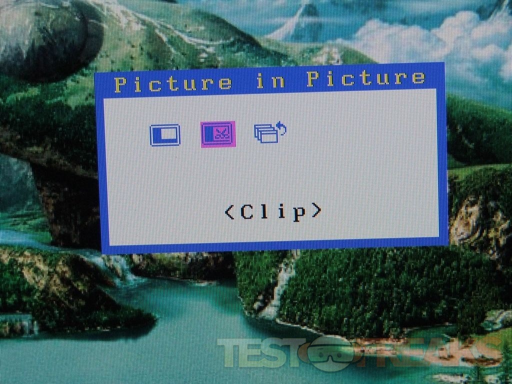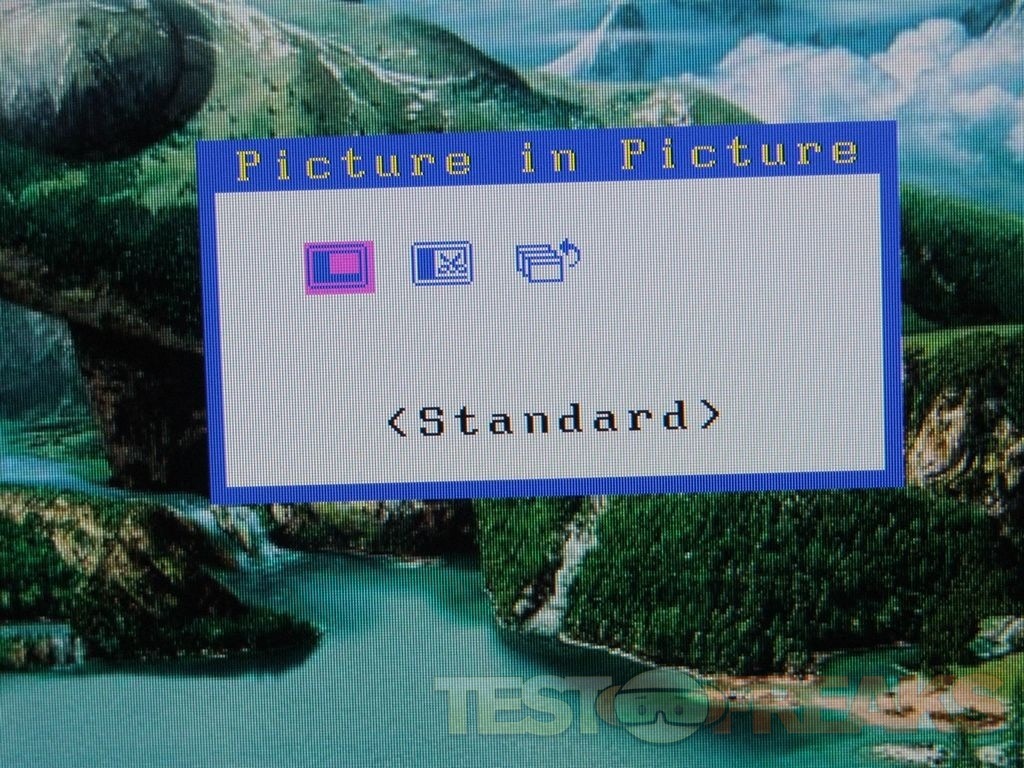 On the bottom front center of the monitor is where you’ll find a bunch of buttons to access the menus, navigation and the picture in picture function as well.