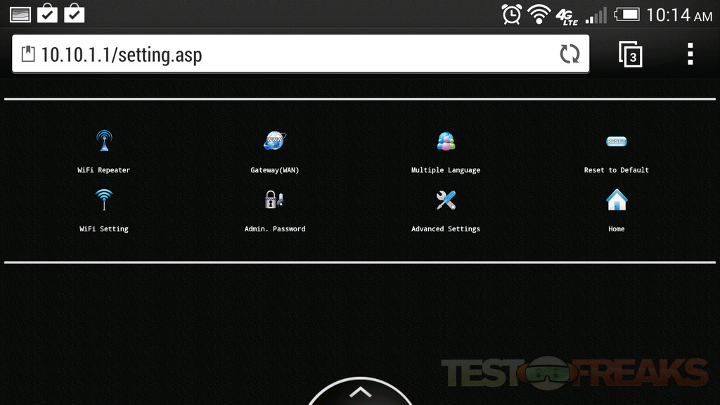 When you access the Wi-Copy the first thing you’ll notice is that the lettering is very small, I mean it’s tiny. From here you can choose from WiFi Repeater, Gateway, Language, Reset, WiFi Settings, Admin Password, Advanced Settings and Home.