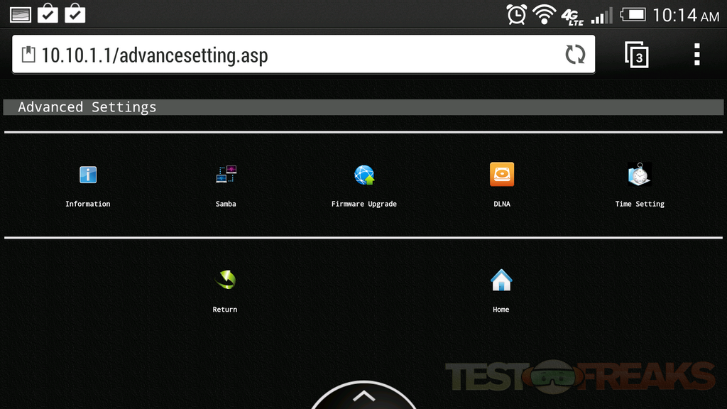 There’s really not much under Advanced Settings with choices for Information, enable/disable Samba, Firmware Upgrade, enable/disable DLNA and Time Setting.