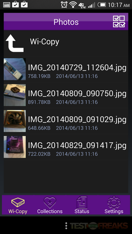 To upload from the Wi-Copy you basically do the process in reverse, select what you want and transfer them to your phone.