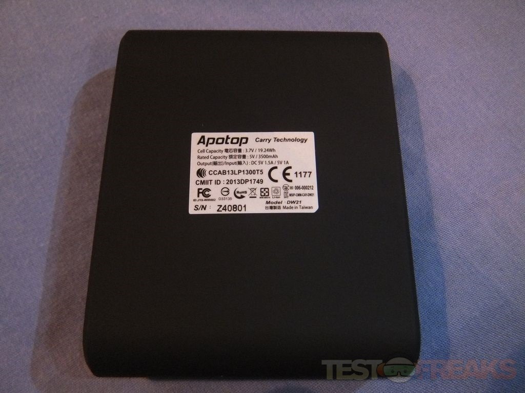 The Wi-Copy measures about 3.5″ x 2.9″ x 0.9″ (L x W x H) and it’s plastic but it has the common rubberized texture on it that lots of devices do today. The top has the Apotop logo and under that you’ll see four LEDs for battery, SD Card/storage, wi-fi and power.