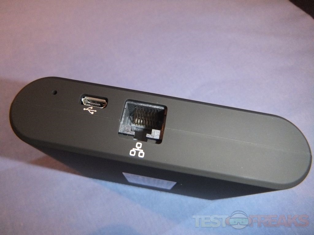 On the right side you’ll find a small hole which is fir reset, a microUSB port for charging the Wi-Copy and an Ethernet port to connect to your network.